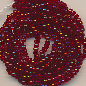 Rocailles rot rubin klar, Inhalt 11 g, Größe 6/0, böhmisch Strang